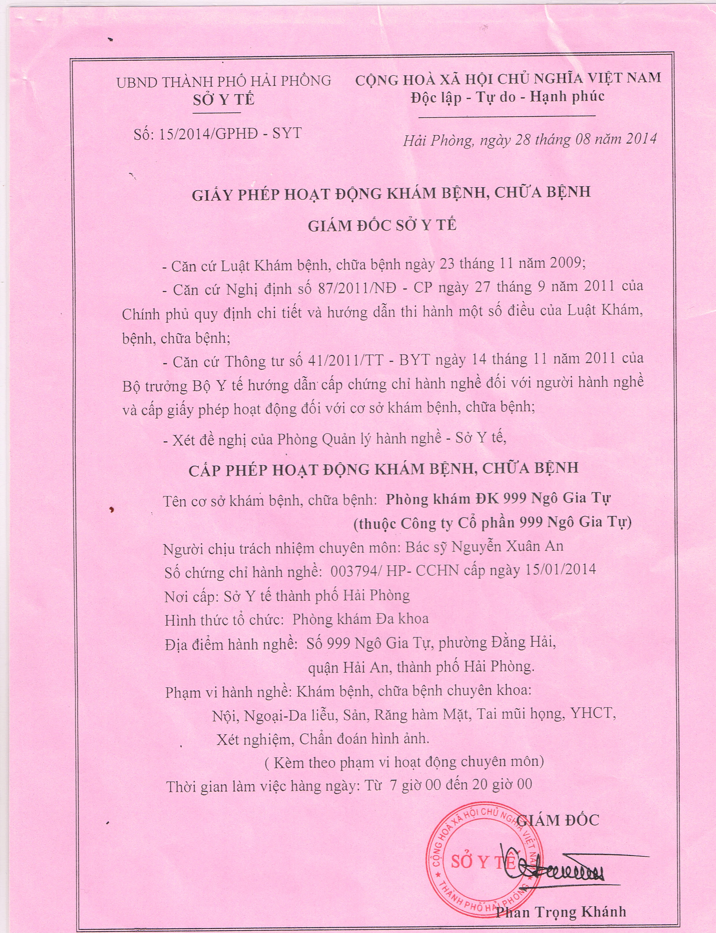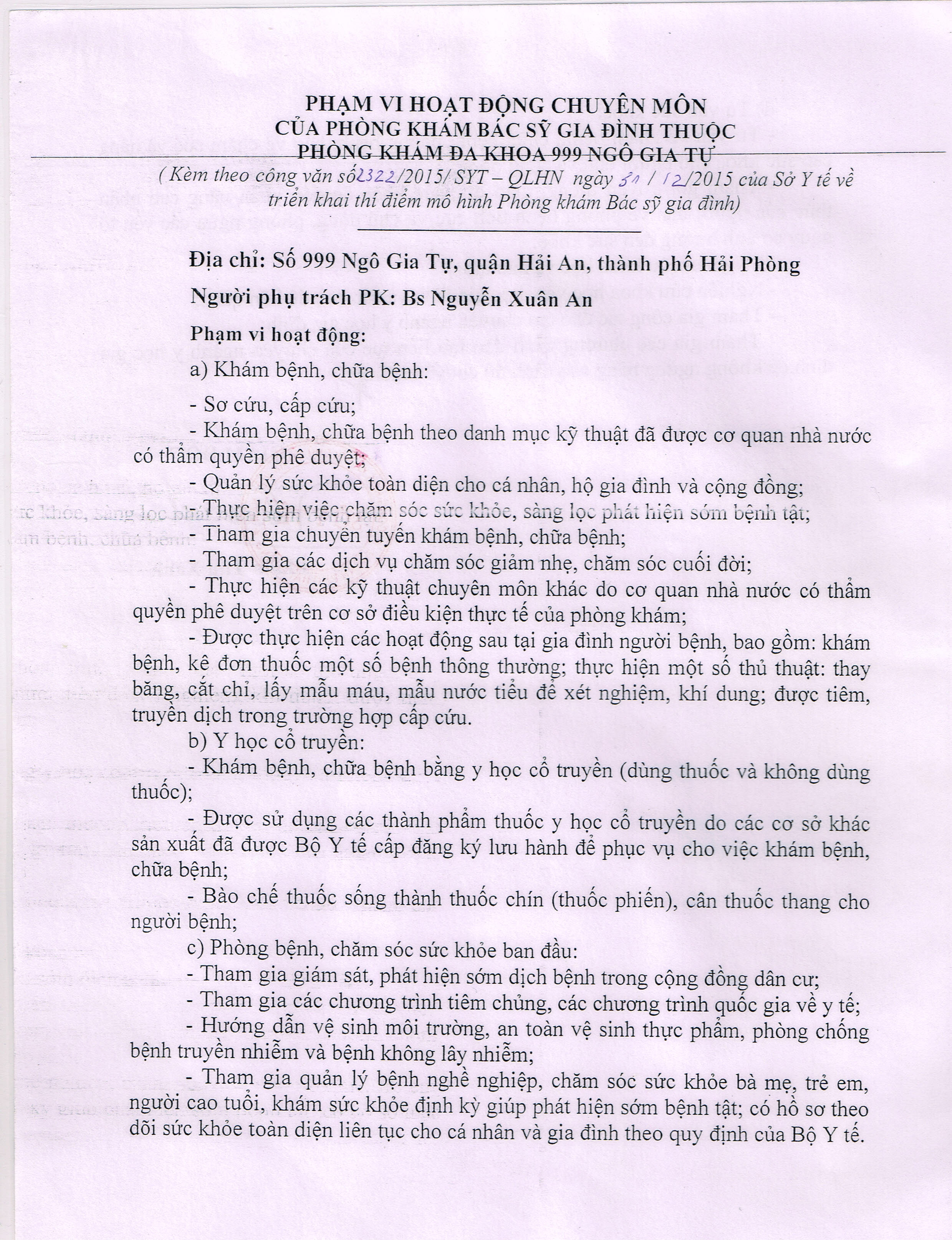 (Bác sĩ gia đình: 999 Ngô Gia Tự - Hải Phòng)