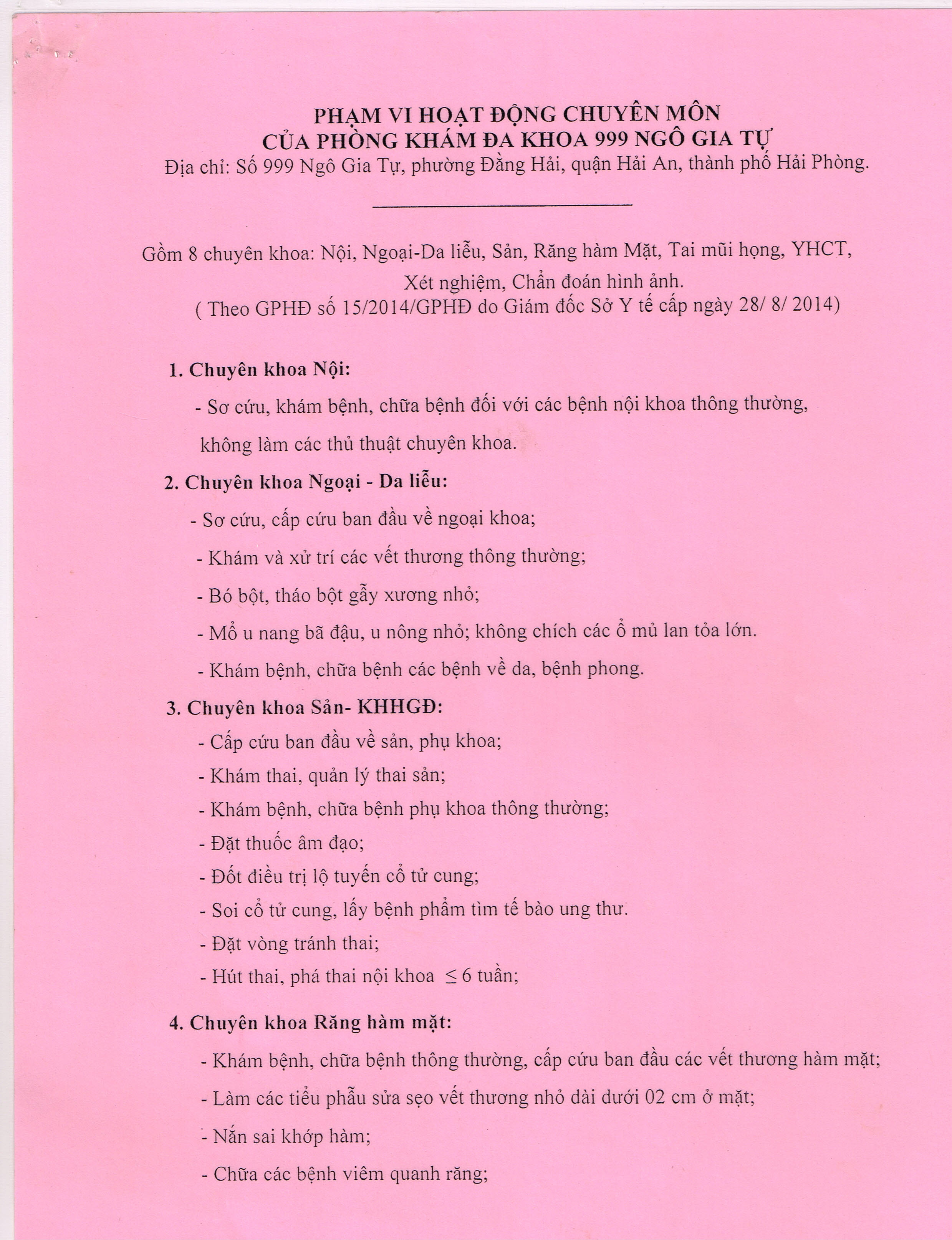 Bản quyền 2016: Phòng khám Đa khoa Ngô Gia Tự - Hải Phòng Địa chỉ: 999 Ngô Gia Tự - Hải An - Hải Phòng Điện thoại : 0313.944.073 - 0913.012.104 Email: pkdk999ngt@gmail.com Phần mềm nền web - Thiết kế website
